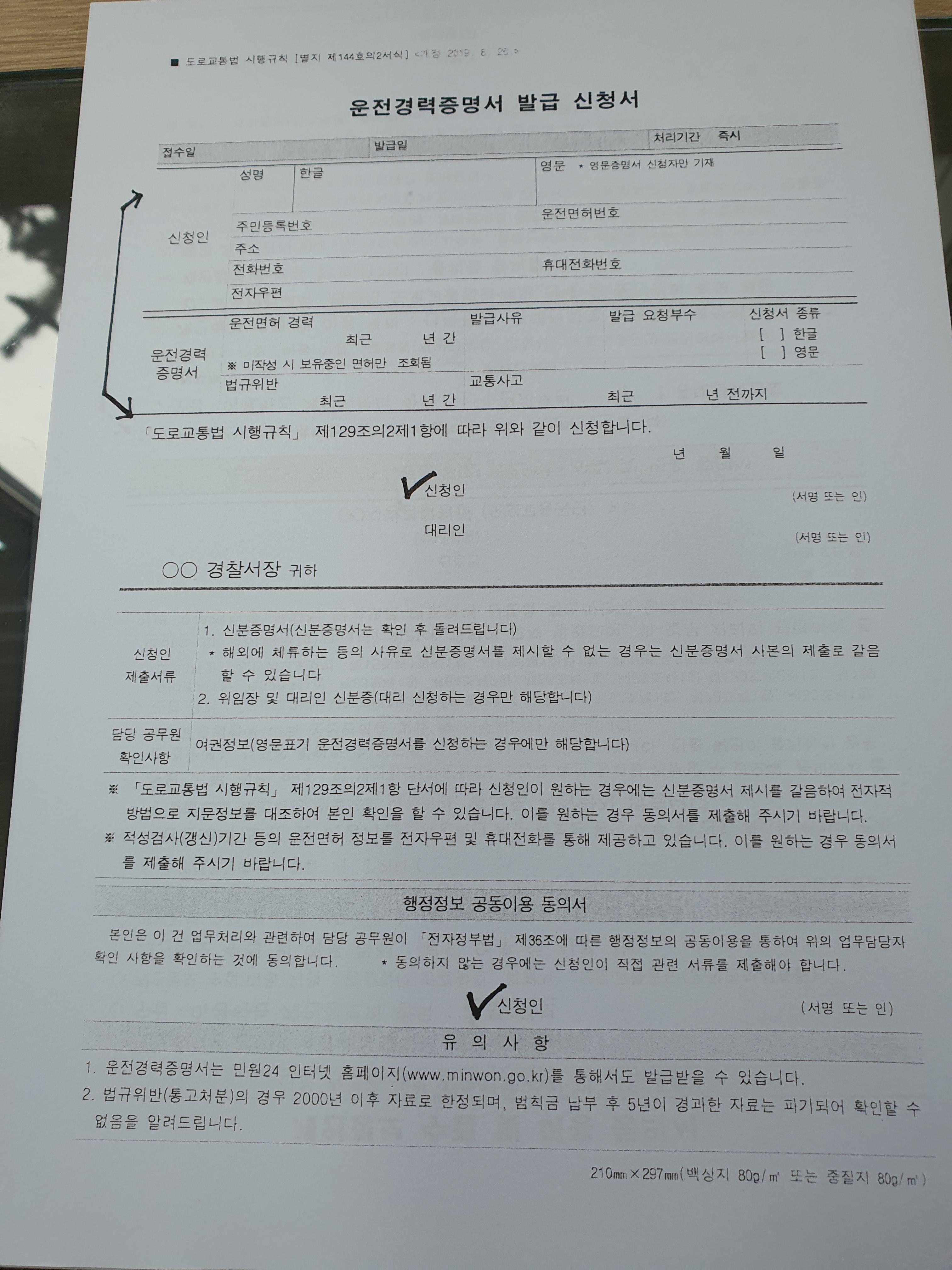 - 신체검사서 (교통안전공단 지정병원에서 발급, 약 6,000원)